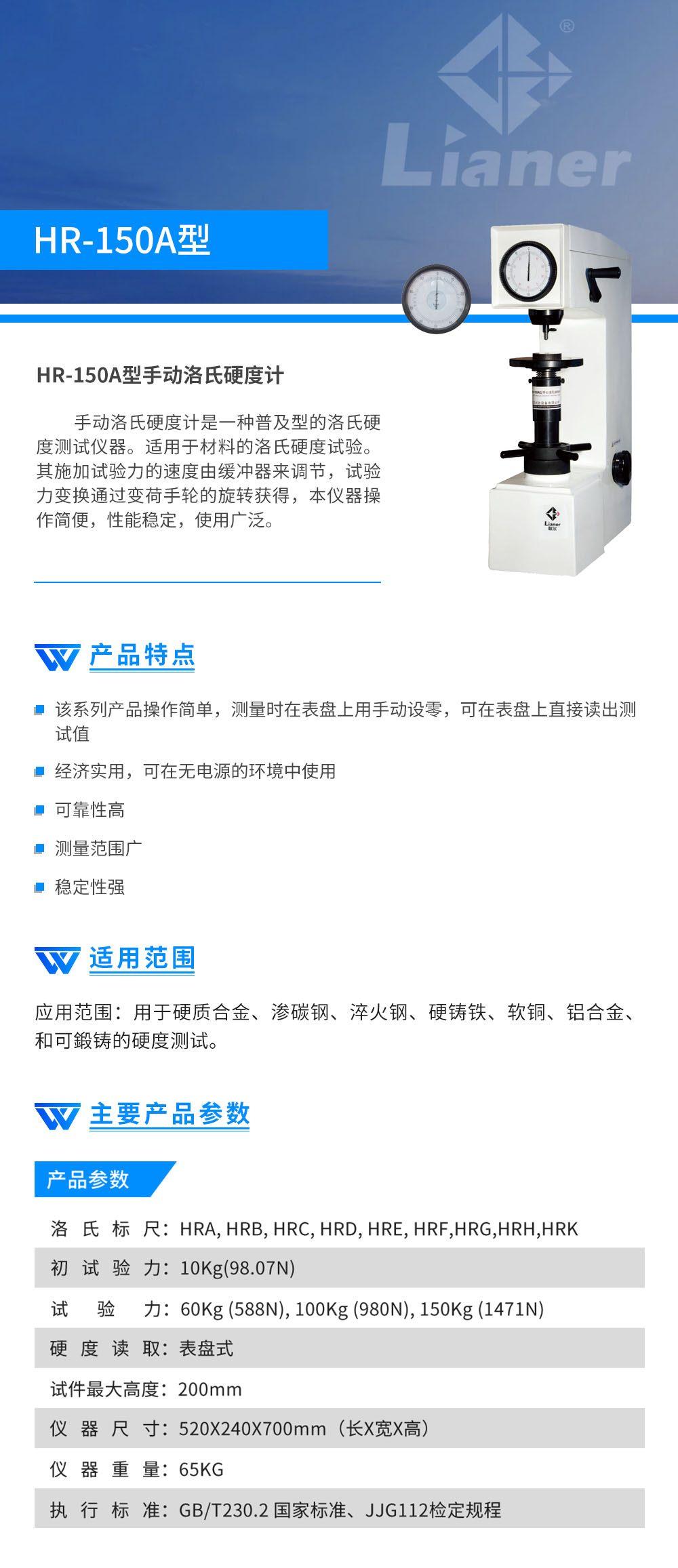 硬度計 聯(lián)爾 手動(dòng)洛氏硬度計 HR-150A