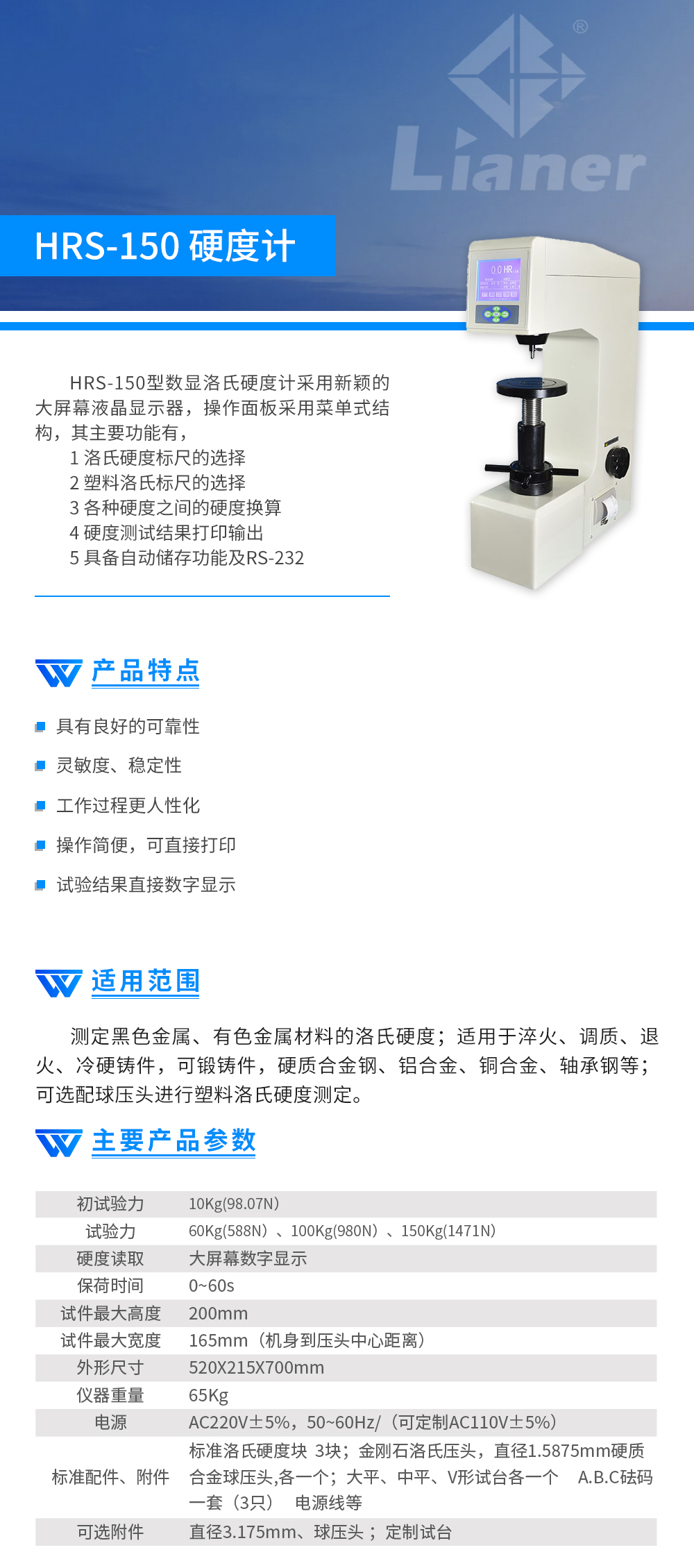 硬度計 聯(lián)爾 數顯洛氏硬度計 HRS-150