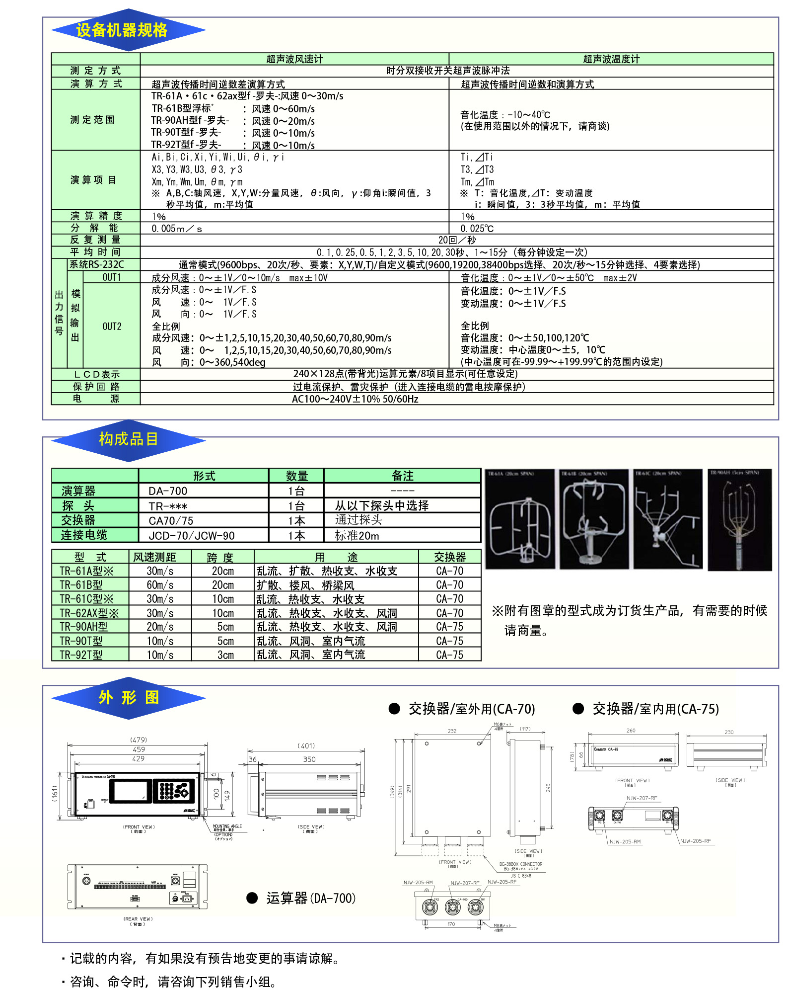 風(fēng)速儀 Sonic 3D超聲波風(fēng)速計/溫度計 DA-700